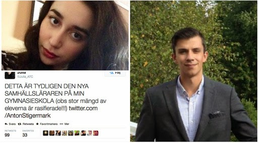 Η εφημερίδα Nyheter24 μίλησε με την μαθήτρια που ειδοποίησε πρώτη τους συμμαθητές της για τις πολιτικές πεποιθήσεις του νεαρού καθηγητή μέσω Twitter.